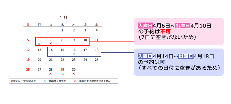 Q: 入庫予定日と出庫予定日に空きがありますが予約ができません