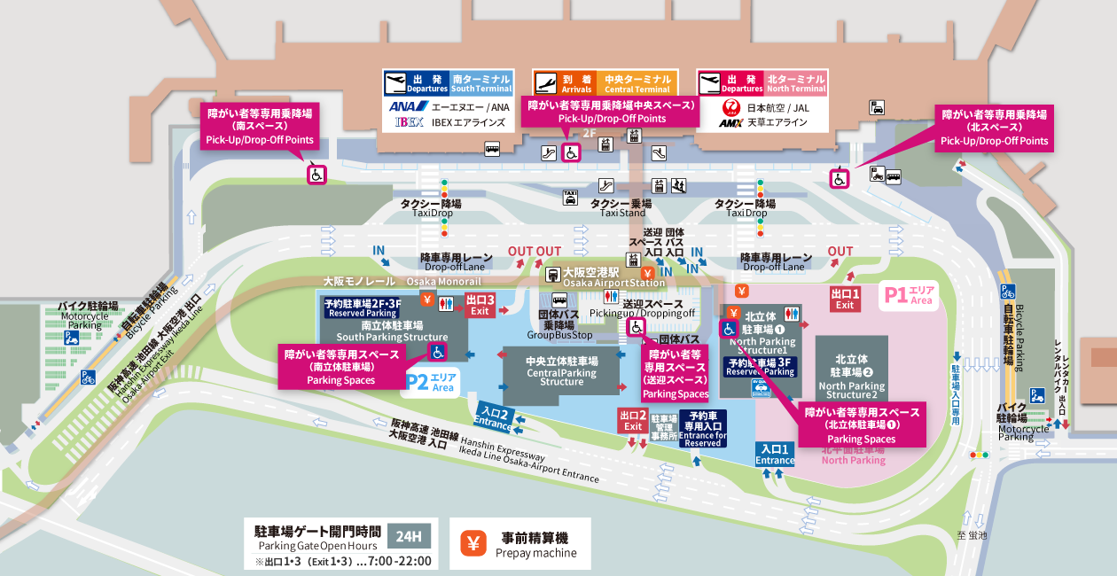 - 駐車される場合は、大阪国際空港駐車場をご利用ください。
