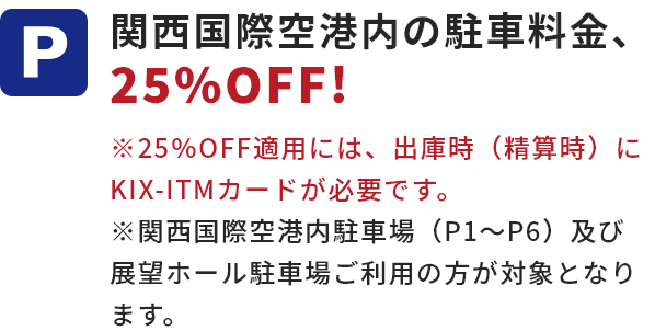 関西国際空港駐車場割引(KIX-ITMカード25%割引)