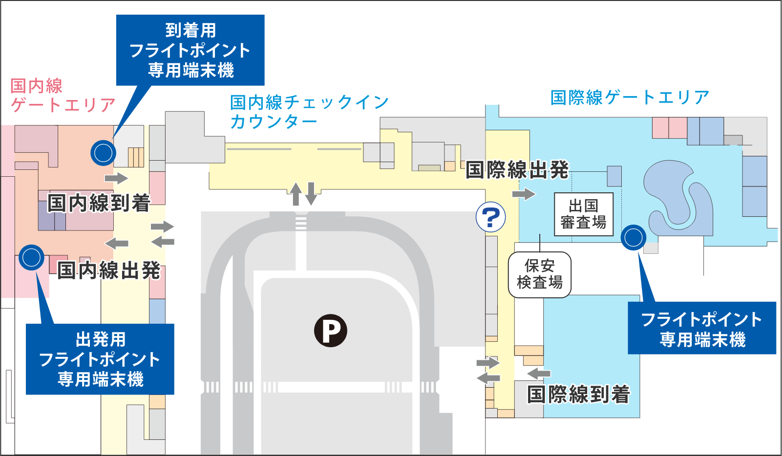 出発口・到着口(国際線は出国エリアのみ)に設置された「フライトポイント専用端末機」でポイントを貯めてください。