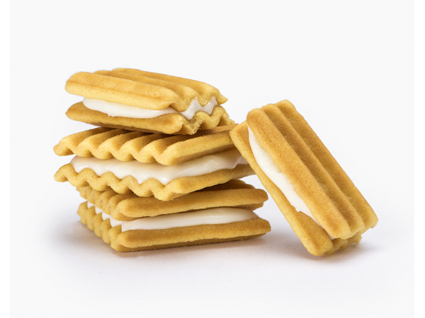 홋카이도산 식재료를 사용한 농후한 밀크 크림을 바삭바삭한 와플 반죽 사이에 넣었습니다.