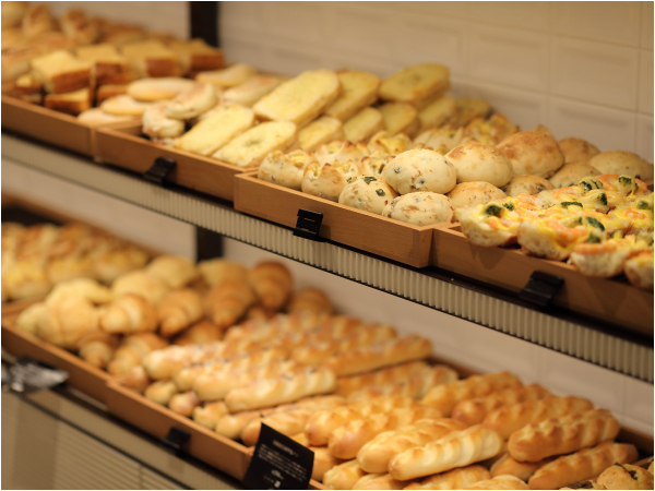 楽天トラベル「朝ごはんフェスティバル」で優勝した「日本一の朝食ベーカリーセット」をはじめ、人気の自凝雫塩塩パンなど、生地から手作りした焼きたてのベーカリーやスイーツが並びます。