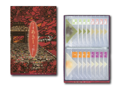 秋限定のおたべとなります。つぶつぶの栗つぶがたっぷり入った「栗あん」とほくほくに炊き上げた「紫芋あん」を、こだわりの原料と製法でつくり上げた「生八つ橋」で包み込みました。定番のにっき味・抹茶味も入っており4つのお味をお楽しめいただけます。